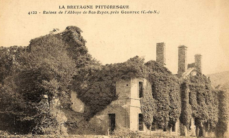 Vendue comme bien national à Julien Le Bris, l'abbaye du Bon-Repos est transformée, en 1796, en manufacture de toile. Elle est attaquée et pillée en janvier 1796 par des Chouans (de la division du Chayla ou Chélas) et en 1800. En 1832, l'abbaye du Bon-Repos héberge des forçats qui creusent le canal de Nantes à Brest. Après 1850, l'abbaye du Bon-Repos devient une carrière de pierre pour les habitants des environs.