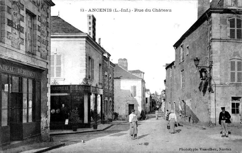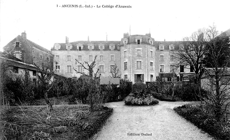 Il conviendrait ici de parler du château d'Ancenis, mais l'espace nous manque pour le faire. Cette importante forteresse bâtie à la frontière de la Bretagne joua naturellement un grand rôle dans les guerres du moyen-âge et subit plusieurs sièges dont quelques uns furent très sérieux. On détruisit, par ordre d'Henri IV, ses fortifications à la fin des guerres de la Ligue ; il n'en reste que quelques vestiges, notamment une belle porte du XVème siècle, flanquée de deux tours qu'ornent de riches mâchicoulis ; du donjon la base seule demeure formant une esplanade d'où l'on jouit d'un admirable panorama sur toute la vallée de la Loire. Une partie du logis seigneurial, oeuvre délicate du XVIème siècle, présente encore sur sa façade toutes les élégances et toutes les richesses de la sculpture monumentale au temps de la Renaissance. Le château d'Ancenis ne fut point, vendu pendant la Révolution parce que le duc de Charost n'émigra pas. Ce sont les héritiers de ce dernier baron d'Ancenis qui ont libéralement cédé en 1859 l'antique place-forte aux religieuses de Chavagnes pour y créer une pieuse communauté et un utile pensionnat de jeunes filles. Là où guerroyèrent pendant de longs siècles tant de vaillants soldats, d'humbles soeurs prient Dieu et apprennent à l'aimer (abbé Guillotin de Corson).