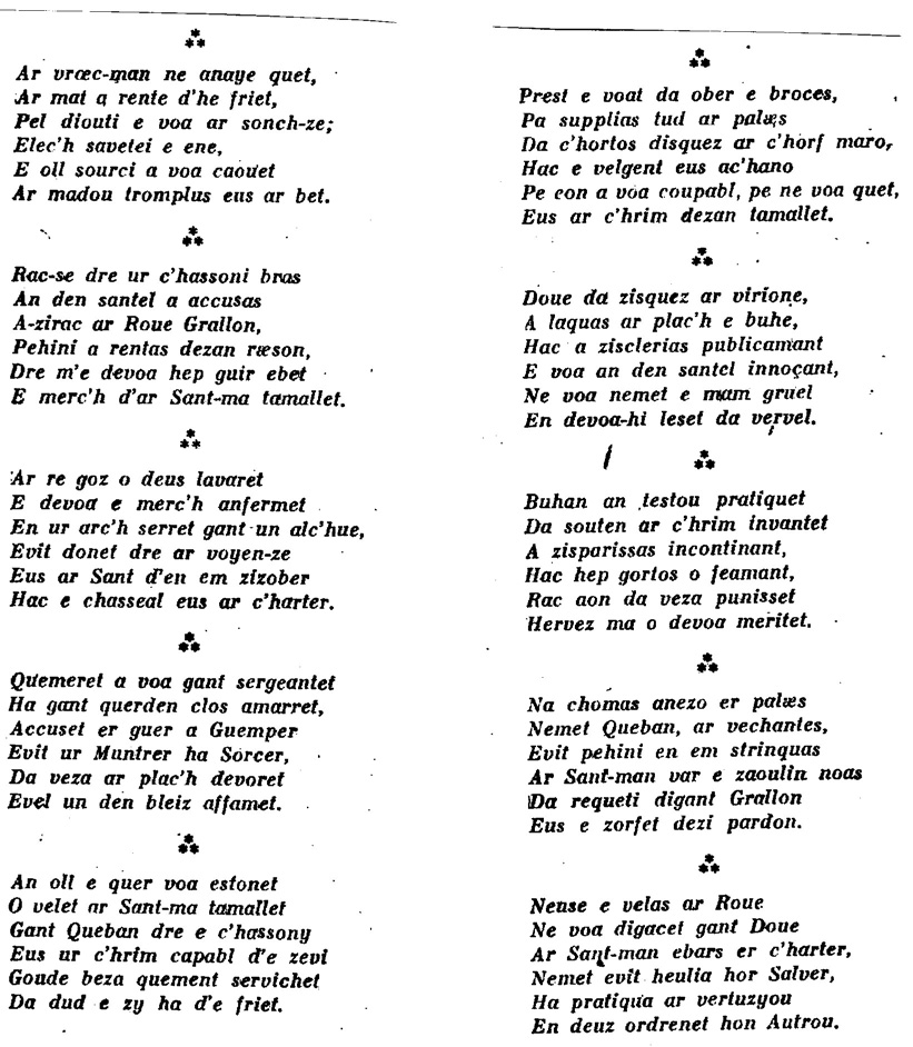 Ce cantique, qui en supplanta un autre, a pour auteur un prêtre originaire de Locronan, l'abbé Chapalain. Ce prêtre signe aux registres paroissiaux en 1740.