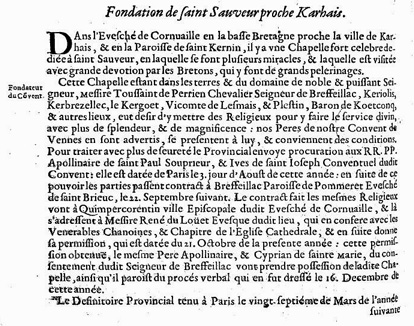 déal du Chapitre de Quimper, 10 décembre 1540, parle d'une fondation faite