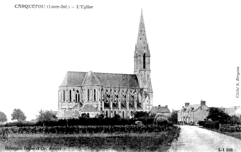 Note 1 : liste non exhaustive des recteurs de la commune de Carquefou : Gilles Perrotin (en 1390) qui est, semble-t-il, le restaurateur de l'église de Carquefou incendiée en 1341, Jean Pertui (en 1400), Geoffroy de Guitres (en 1404) qui est présenté comme recteur de Carquefou par messire Mathieu Louet, chanoine de la cathédrale de Nantes, Guillaume Piquelo (en 1486), Vas Fernandon Olivarez (en 1509) qui est d'origine espagnol et qui rend aveu en 1509 à l'évêque de Nantes, Denis Boudet (en 1515) qui participe à de nombreuses querelles avec les chanoines de la cathédrale de Nantes, à propos des dîmes de Carquefou, Geoffroy Moreau (en 1530), scolastique de Saint-Brieuc, chanoine de Dol et de Nantes, ainsi que le fondateur de la chapellenie de Notre-Dame-la-Blanche située au haut bourg de Carquefou, Silvestre Garreau (de 1539 à 1597), Pierre Rinvalle (en 1597) qui a un procès avec les chanoines de la cathédrale de Nantes au sujet des dîmes de Carquefou, Jacques Mathurin le Saige (en 1600), Thomas Fernandez (en 1602) qui rend aveu de la cure de Carquefou à l'évêque de Nantes le 7 mai 1602, Mathurin Gaultier (en 1612), Jean Desnoyers (en 1646), Monbousin (en 1664), Macé le Serf (en 1680), Philippe Gaultier (en 1686) qui décrit l'église en 1686, Place-de-foire, avec son fronton triangulaire et à l'intérieur le grand tombeau de la famille d'Avaugour, Masceron (en 1701), Jacques Buan (en 1703), Maurice Cailleteau (en 1736) qui fit construire la deuxième église avec l'appui du marquis de Becdelièvre, de Fresneau de La Couronnerie, de Michel Taverne, seigneur de L'Epinay, et de Julie d'Espinoze, châtelaine des Renaudières, Joseph Bongrain (en 1745), Gabriel Héry (de 1775 à 1798), souvent caché à La Renaudière chez Julie d'Espinoze, et à La Vincendière, chez dame Poulain Marie, Julien Nicolas (de 1791 à 1794), Jean Baptiste Lequimener ou Lequimeneur (de 1803 à 1827), Joseph Marie Julien Bigaré (de 1828 à 1840), Julien Clouet (de 1840 à 1842), Michel Bachelier (de 1842 à 1862), J. Le Quilliec (de 1862 à 1886), Louis Maugat (de 1886 à 1901), Ferdinand Robert (en 1902), Le Corvec, Aoustin, .... Noms de quelques prêtres originaires de Carquefou : - Gabriel Herbert (en 1602), seigneur de la Touche, recteur de Sucé, chapelain de Notre-Dame-de-la-Blanche, - Charles Simon de la Chambre (en 1633), seigneur de la Bidaudière, chanoine de la Collégiale de Notre-Dame de Nantes, - Nicolas de Harouys (en 1635), de la Seilleraye, supérieur des Jésuites de Nantes, - Louis de Harouys (en 1635), de la Seilleraye, jésuite à Nantes, - Georges Rouxeau (en 1639), chapelain de la chapellenie de la Guyhonnière, - Pierre d'Espinoze (en 1640), des Renaudières, abbé de Rillé, - Claude Gaborit (en 1686), de Prouzeau, - Mathurin Bizeul (en 1686), recteur de Saint-Vincent de Nantes, - Joseph Fresneau de la Couronnerie (en 1734), chanoine de la Collégiale de Notre-Dame de Nantes, - Pierre Coupperie de la Bidaudière (en 1734), vicaire de Carquefou, - Charles Auguste d'Avaugour (en 1747), du Bois d'Avaugour, chanoine de Nantes, prieur de Notre-Dame du Pommier d'Aigre, - Alexandre Bazille (en 1789), de la Barre de Riou.