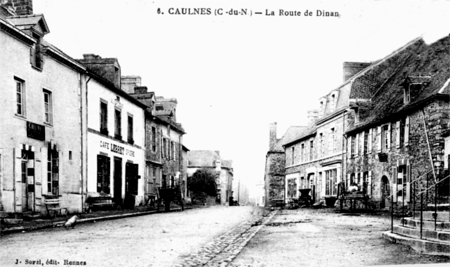 Note 1 : en 1209, Guillaume, abbé de Beaulieu, approuve un règlement de Pierre Giraud, évêque de Saint-Malo, et de son chapitre, pour les dîmes de Saint-Pierre de Caulnes. En 1224 Richard Maréchal, seigneur de Dinan, énumère et confirme les donations faites à Beaulieu par ses prédécesseurs (c’est-à-dire Rolland et Alain de Dinan et Juhel de Mayenne) : " .... Ex donations domini Alani molendinum Heaumery et ut omnes homines dommii nostri de Cauna veniant blada, sua molere ad dictum molendinum, ex debito .... " (De la fondation du seigneur Alain : le moulin Heaumery et le devoir qui incombe à tous les hommes de notre terre de Caulnes a venir moudre leur blé au dit moulin - voir Bibl. Nle. : a) Ms fr. 22325, f° 482 ; b) Ms L. 17092, f° 155). En 1226, Geoffroy de la Roche, chevalier, donne au chapitre de Saint-Malo et à l'abbé de Beaulieu une partie des dîmes de Listernoc, en Caulnes : " Omnibus, etc., Gaufridus de Rocha, miles, Sal. in Domino. Noveritis quod ego dimisi et concessi D. R. Maclovo episcopo et capit, ejusdem ecclesie, Capit. et B. Abbati de Bello Loco et ejusdern ecclesie Capitulo totam decimam de tractu de Listernoc, sitam in parrochia de Caune, tali conditione quod idem B. Maclov. Ep. et ejusdem eccl. Cap. et Abbas B. M. de Belloloco et ejusdem Ecelesiæ Capitulum, michi et heredibus, meis in pace dimiserunt et concesserunt totas portiones suas quas percipiebant annuatim in tota decima parrochie de Cauna, scilicet terciagium dominicarum et nonagium totarum decimarum, et insuper, ego, Gaufridus, pred. hoc juravi pace, in perpetuum tenere, preterea ego, Gaufridus, predictus et heredes mei tenemur hoc defendere ; domino R. et B. et Capitulis predictis ab omnibus ad decimam predictam pertinentibus et garantizare et ut hoc ratum permaneret et stabile in perpetuum. Litteras... sigilli mei munimine confirmavi. Actum anno Domini 1226, mense Maii. " (Archives de Saint-Malo). Mandement de la duchesse Anne de Bretagne daté du 25 novembre 1489 : " Seurté durant ceste presente guerre pour les parouessiens contributiffs à fouaige de la parroesse de Caune, à troys lieues estante près la ville de Dinan : par quoy est deffendu à touz et chascun gens de guerre tenans le party de la Duchesse de non les courir, piller ne les prandre à prisonniers, ne leur faire aucun mal ne ennuy, en corps ne en biens, en aucune manière. Daté du XXVe jour de novembre (signé) G. Salmon". Sous la république, le bourg de Caulnes est le théâtre d'un combat entre les royalistes, commandés par MM. J. de Saint-Pern et Crepel, et des soldats républicains casernés au château de Coëtlan. Deux autres rencontres ont lieu à la même époque au village de la Perchais et dans les environs. Un violent combat a lieu en 1795 près de la rue Valaise entre les Chouans qui occupaient le château de Coueslan en Guitté, et les troupes républicaines du général Champeaux.