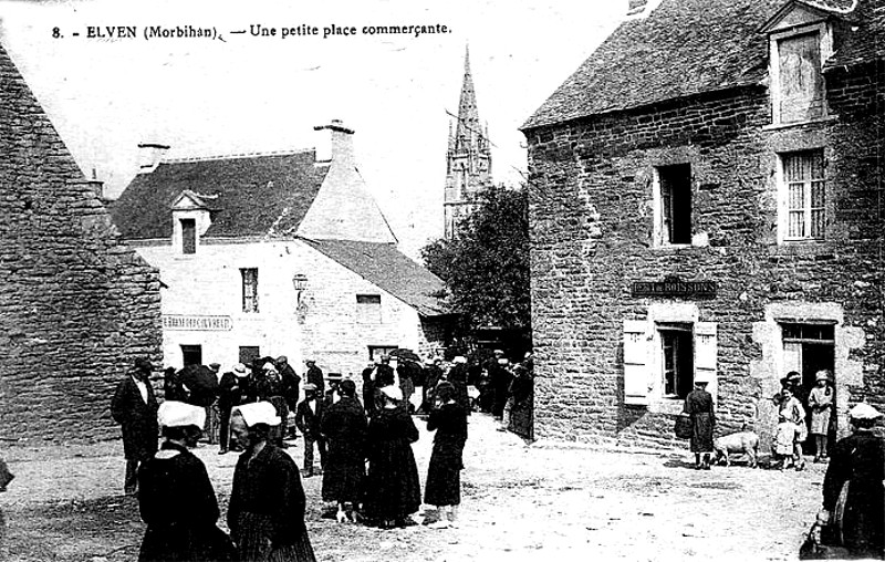 Note : Elven, sur la route de Vannes à Ploërmel, est l'une des grandes paroisses du diocèse. Avant qu'on lui eut retiré Trédion en 1820, sa superficie totale était de 8977 hectares, et se rapprochait de Languidic, de Cléguérec, de Carentoir, etc... En 1891, il lui reste encore 6401 hectares, dont un tiers environ est sous labour, un tiers sous prés, bois, etc., et le reste sous lande. Ce territoire, traversé par la rivière d'Arz et arrosé par plusieurs ruisseaux, produit en abondance du cidre, du seigle et du sarrasin. Le bourg, placé au centre de la commune, rend le service religieux et civil plus facile que dans des localités moins importantes. Sa population en 1891 est de 3326 habitants. Les Celtes ont laissé de nombreuses traces de leur séjour, dans la lande de Lanvaux, qui était jadis couverte de forêts, et qui en conserve encore des restes dans les bois de Kerfily, de Hanvaux, de Coetby... La majeure partie de Lanvaux appartenant aujourd'hui à Trédion, c'est là qu'il faut chercher la description des monuments mégalithiques qui couvrent son sol. Elven n'en garde qu'une partie, aux environs des villages de Kerbley, Saint-Germain, le Clestro, les Princes, Panistrel et Cornebo. « Tout cet espace est parsemé de dolmens ruinés, de menhirs debout ou renversés, et de pierres curieusement excavées. Il faut remarquer qu'en général ces monuments se trouvent sur la rive gauche de l'Arz ; la rive droite en est presque entièrement dépourvue », par suite des progrès de l'agriculture. Les Romains ont aussi laissé dans ce pays une profonde empreinte. La voie de Vannes à Rieux traverse l'extrémité méridionale de ce territoire, auprès des villages de Penro et du Halinier. C'est probablement de cette voie que provient une borne milliaire, de forme cylindrique, mesurant deux mètres de hauteur, transportée au village de Saint-Christophe à une époque reculée, creusée depuis en forme d'auge et appelée pour cette raison le « tombeau de Monsieur saint Christophe ». Signalée en 1842 par M. Than, et acquise par la Société polymathique, elle figure aujourd'hui au Musée archéologique. Elle porte l'inscription suivante que par un grand bonheur, le marteau avait épargnée : MAGNO - IMP. CAES. - AVRELIAN. – INVICTO – TRIB. POT. – III. P. P. – A. D. M. … La distance en milles fait défaut, mais la 3ème année du tribunat d'Aurélien permet de rapporter la colonne à l'an 272 de notre ère. Au même village de Saint-Christophe, M. Than découvrit, également en 1812, une villa gallo-romaine, composée de plusieurs pièces et munie d'un hypocauste. Il y rencontra une monnaie de Claude II, une fibule, une clef en bronze, une anse brisée, une patère en bronze et de nombreux fragments de poteries diverses, au milieu d'innombrables briques. On peut voir ces objets au Musée archéologique. En plusieurs autres endroits on trouve des briques à rebord et d'autres indices de constructions antiques ; à la Boissière, près du bourg, ces vestiges sont considérables, et une fouille pourrait être productive. Au village de Lescastel, se trouve un camp romain, de forme carrée, ayant environ cent mètres de côté ; il est situé sur un point très élevé, d'où l'on commandait la voie, qui passe à Penro. On rencontre aussi d'autres traces de retranchements à Léaulet, au Quelenec, à Truhélan, à Mérionec, à la Haye-Dréan, à Coh-Castel, au Feuvy, à Lesvis... ; mais plusieurs d'entre eux sont si incomplets qu'on ne sait s'il faut les rapporter à l'époque romaine ou au moyen âge. Il n'en est pas de même d'une enceinte presque ronde, qui se trouve à Keranderf dans le quartier de Camarec, et qui domine la voie de Vannes à Trédion ; elle est franchement romaine. Au moyen âge, Elven devint le centre d'un fief considérable, démembré du comté de Vannes vers 907, et s'étendant d'une manière approximative de Larré au Loc, et du Morbihan à la Claye. Son siège principal était dans la forêt ou le parc d'Elven, et s'appelait pour cela Argoet, et plus tard Largoet. (Joseph-Marie Le Mené - 1891).