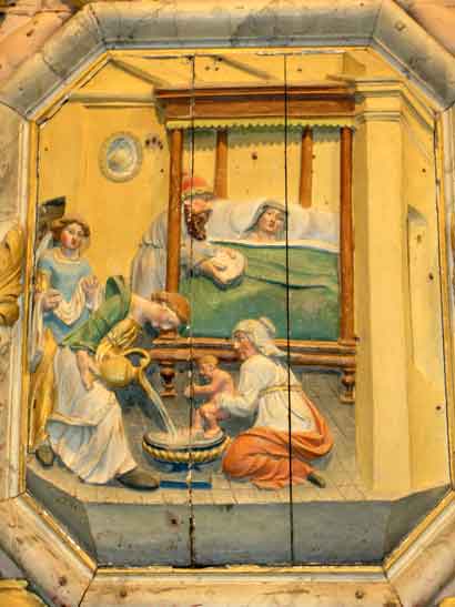 Panneau gauche du retable de la Passion : Nativité de la Vierge Marie |