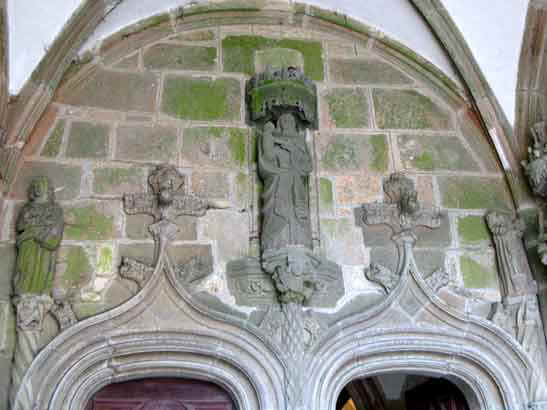 — Le PORCHE (1533). Vaste, de style gothique, en pierre de Kersanton finement ciselée. Il fait partie des chefs-d'oeuvres du XVIème siècle. A la partie haute, une statue de saint Michel, surmontée de saint Pol. Au sommet, la Vierge et saint Jean.