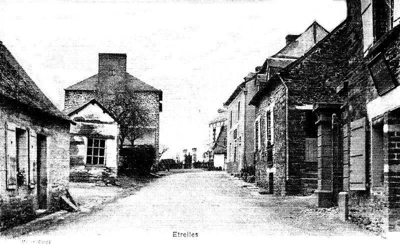 L'existence ancienne d'Etrelles nous est prouvée, — au moins indirectement, — par la présence dans les actes de la fondation du prieuré de Sainte-Croix de Vitré d'un témoin appelé Normand d'Etrelles, « Normannus Straellarum », ailleurs « de Straellis ». Cette fondation eut lieu aux environs de l'an 1070, ce qui fait remonter Etrelles, dont ce seigneur portait le nom, au milieu du XIème siècle (M. de la Borderie, Revue de Bretagne et de Vendée, XXIX, 494 — Il est vraisemblable que cette famille seigneuriale d'Etrelles habitait le château de la Motte, terre noble mentionnée en 1440 et 4513, et où l'on voit encore une motte féodale). Vers la fin du siècle suivant, nous voyons André II, baron de Vitré (1173-1211), signer une charte à Etrelles même, « apud Estraeilles » (Bibliothèque nationale, Blancs-Manteaux, XLV, 721).