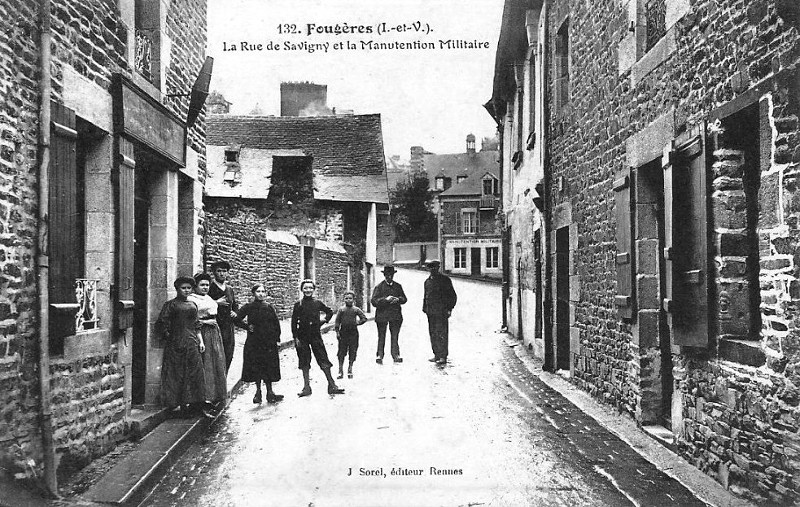 La baronnie de Fougères : Comme toutes les grandes seigneuries créées au XIème siècle sur les frontières de la Bretagne, la baronnie de Fougères fut formée par les princes bretons en faveur d'un seigneur de leur race ; il se nommait Main, était neveu d'un archevêque de Dol et vivait au commencement du XIème siècle. Il semble s'être établi d'abord au Pont-Main (nota : Le Pont-Main, hameau de la commune de Saint-Ellier [Mayenne], devenu célèbre par l'apparition de la sainte Vierge) où se retrouve encore l'assiette d'une vieille forteresse ; ce fut seulement son fils Auffroy, qui, lui ayant succédé vers 1024, construisit dans la riante vallée du Nançon le château de Fougères autour duquel se groupa peu après la ville du même nom. On lui attribue aussi la construction de la première église de Fougères, dédiée à Notre-Dame, édifiée dans le château même et aujourd'hui rasée. Auffroy mourut vers 1048 et eut pour successeur son fils Main II ; ce dernier, décédé en 1091, fut inhumé dans l'église de Saint-Sauveur-des-Landes. Raoul Ier, fils du précédent, fut un des plus illustres barons de Fougères ; il combattit vaillamment à Hastings et plus tard à Tinchebray, fonda l'abbaye de Savigné et mourut en ce monastère sous l'habit religieux en 1122. Ses deux fils Main III et Henri Ier lui succédèrent, le premier pendant quelques mois seulement, le second jusqu'en 1150, époque à laquelle, imitant son père, ce seigneur se retira à l'abbaye de Savigné et y prit l'habit monastique ; il y mourut l'année suivante et fut inhumé dans le cloître de ce monastère qui devint dès lors le lieu ordinaire de la sépulture des seigneurs de Fougères (Maupillé, Histoire de Fougères). Raoul II, fils du précédent et d'Olive de Penthièvre, fut un vaillant chevalier qui prit une grande part aux guerres contre les Anglais en Bretagne ; il ne peut toutefois empêcher le roi d'Angleterre Henri II de prendre d'assaut Fougères et de ruiner son château (1166). Mais il releva sa forteresse, continua de batailler, puis se croisa et gagna la Palestine dont il ne revint qu'en 1193. L'année suivante il mourut près de Savigné où il fut inhumé. Il eut pour successeur son petit-fils nommé Geoffroy, né de Guillaume, décédé avant son père et d'Agathe du Hommet ; la tutelle de cet enfant fut confiée à son grand oncle Guillaume l'Angevin. Devenu homme, Geoffroy de Fougères épousa Mahaut, fille d'Eudon, comte de Porhoët ; cette alliance, faisant passer une partie des biens de la riche maison de Porhoët dans celle de Fougères, rendit celle-ci une des plus puissantes de Bretagne. Le baron de Fougères décéda en 1212 et fut inhumé au cloître de Savigné. Raoul III, son fils, lui succéda à l'âge de 5 ans, ayant pour tuteur Pierre de Dreux, duc de Bretagne ; il épousa Isabelle de Craon, fut fait chevalier en 1235 par Louis IX et accompagna ce saint roi à la croisade de 1248. Le 29 janvier 1253, Raoul maria sa fille unique Jeanne de Fougères à Hugues XII de Lusignan, comte de la Marche ; trois ans plus tard il mourut âgé de 52 ans, le 24 mars 1256, et son corps fut déposé à l'abbaye de Savigné. Avec ce baron finit la maison de Fougères après deux siècles et demi d'existence. Hugues XII de Lusignan eut pour successeurs à Fougères ses fils Hugues XIII mort en 1302 et Guy de Lusignan. Mais ce dernier seigneur s'étant allié aux Anglais, et leur ayant livré des places fortes, le roi Philippe-le-Bel le cita à la cour des pairs ; ceux-ci le déclarèrent coupable du crime de félonie et le condamnèrent à la confiscation de ses biens. La baronnie de Fougères, saisie de la sorte par le roi de France, fut donnée par lui à son fils Charles, comte de la Marche, des mains duquel elle passa d'abord à Philippe de Valois, puis à Charles, duc d'Alençon. Fougères fut ensuite possédé pendant cent dix ans par les princes de la maison d'Alençon : Charles Ier (1328 à 1346) ; — Pierre Ier (1346 à 1404) ; — Jean Ier (1404 à 1415) ; et Jean II (1415 à 1428). Ce dernier duc d'Alençon ayant été emmené prisonnier en Angleterre et n'ayant pas de quoi payer la forte rançon qu'on exigeait de lui, se résolut à vendre Fougères pour recouvrer sa liberté. Jean V, duc de Bretagne, lui acheta cette baronnie moyennant une somme de 80 000 saluts d'or et 38 000 écus ; le contrat fut passé le 31 décembre 1428. Le duc Jean V céda Fougères à son fils François, lors de son mariage avec Yolande d'Anjou en 1431. Ce prince devenu duc sous le nom de François Ier vit les Anglais s'emparer par surprise de Fougères ; mais il reprit la ville et le château après un célèbre siège en 1449. La baronnie fut ensuite possédée par les ducs Pierre II et François II, et par la bonne duchesse Anne de Bretagne. La fille de cette dernière, Claude de France apporta Fougères à son mari François d'Angoulême qui régna sous le nom de François Ier. A partir de ce moment, la baronnie demeura aux mains des rois de France ils en conservèrent toujours la propriété, tout en cédant parfois la jouissance : ainsi René de Montejean en 1525, Jean de Laval en 1541, et Diane de Poitiers en 1557 en eurent successivement l'usufruit. A partir de Charles IX, les rois de France unirent simplement Fougères au domaine de leur couronne. Mais en 1753 Louis XV l'afféagea à Louis de Bourbon, duc de Penthièvre et gouverneur de Bretagne qui la posséda jusqu'au moment de la Révolution ; le nom du duc de Penthièvre, resté vénéré dans notre province, clôt dignement la liste des barons de Fougères.
