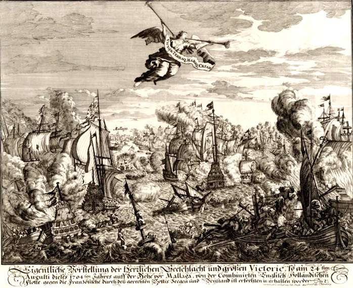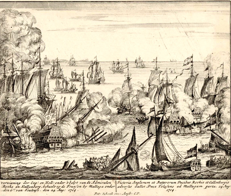 Le commandant de la flotte anglo-hollandaise était l'amiral Rooke. Cette flotte comprenait 59 vaisseaux de ligne, répartis en trois escadres : l'avant-garde était placée sous les ordres du vice-amiral Cloudesley Shovel et du contre-amiral Leake (escadre anglaise) ; le corps de bataille était placé sous les ordres directs de l'amiral Rooke, secondé par les contre-amiraux Byng et Delkes (escadre anglaise) ; enfin, l'arrière-garde (escadre hollandaise) était commandée par le vice-amiral Calembourg et le contre-amiral Van der Dussen.