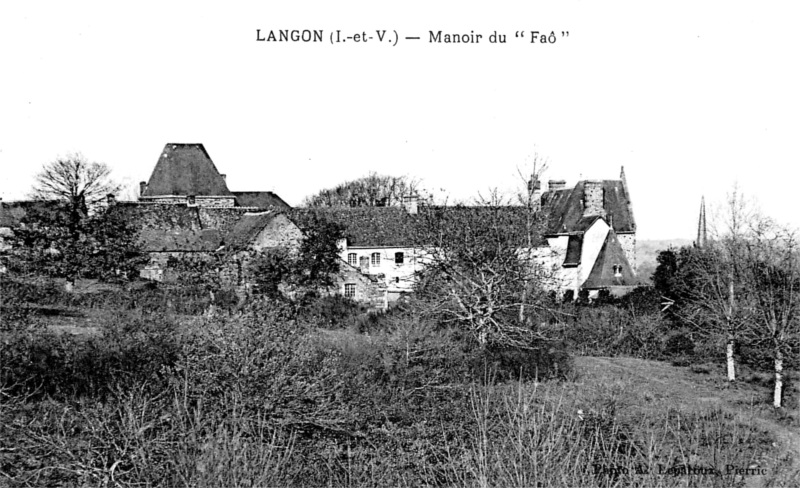 Note 3 : liste non exhaustive des recteurs de la paroisse de Langon : Thibaut Aubin (archidiacre de Penthièvre, il résigna en 1570). Julien Chaloppin (prêtre de Saint-Malo, pourvu le 14 novembre 1570, prit possession le 19). Jean de Boys ou de Brie (il était un ancien recteur de Carnac ; décédé en janvier 1593). Jean Guérin (prêtre de Nantes, pourvu en cour de Rome le 10 mars 1595, prit possession le 28 décembre). Pierre Thomas (originaire de Sixt, il résigna le 2 mai 1602 en faveur du suivant). Jean de Layre (prêtre de Rennes, pourvu en cour de Rome le 21 juillet 1602, prit possession le 13 octobre). Thomas Allouays (prêtre de Saint-Malo, décédé en 1618, fut inhumé le 20 mai à Miniac-sous-Bécherel, d'où il était probablement originaire). Michel Davy (1628). Jean Martel (1631). Clément Perroteau (1674-1680). Jean de la Chévière (issu des seigneurs du Pontlouët, en Fougeray, fut pourvu vers 1681 ; décédé le 20 avril 1698). Julien de la Sauldraye (pourvu le 19 avril 1699, prit possession le 28 mai ; décédé le 22 janvier 1729). André Balen (prêtre de Paris, présenté par l'abbé de Redon et pourvu le 17 mai 1729, résigna en faveur du suivant). Jean-Baptiste-Joseph Guillotel (prêtre de Rennes, pourvu en cour de Rome le 5 février 1743, prit possession le 13 avril ; il construisit en 1747 le presbytère et résigna en 1769 ; décédé le 10 janvier 1770, âgé de cinquante-cinq ans, et inhumé le 11 dans le cimetière). Guy Barré (prêtre de Saint-Malo, pourvu en janvier 1769, résigna lui-même en 1783 en faveur du suivant, avec réserve de 450 livres de pension). Joseph-François Provost (curé de Beslé au diocèse de Nantes, pourvu en cour de Rome le 24 janvier 1784, prit possession le 3 avril et gouverna jusqu'à la Révolution). Jean Collet (1803-1812). N... Denancé (1812-1818). Nicolas Coupard (1818-1827). François-Alexis Lesné (1827, décédé en 1842). Joseph-Edouard Lesné (1842-1871). Armand Bellamy (à partir de 1871).