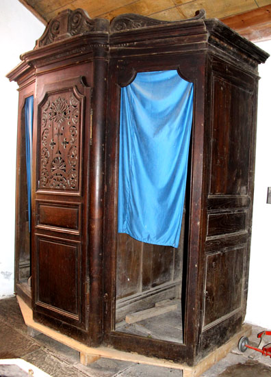 A l'intérieur, on peut voir une statue de saint Loup (XVIIIème), saint Gilles (XVIIIème), saint Guillaume (XVIIème), saint Jean-Baptiste (XVIIIème), sainte Anne, saint Yves, sainte Appoline, saint Blaise, saint Eloi, saint Nicodème, saint Mathurin, provenant de la Noë-Verte.
