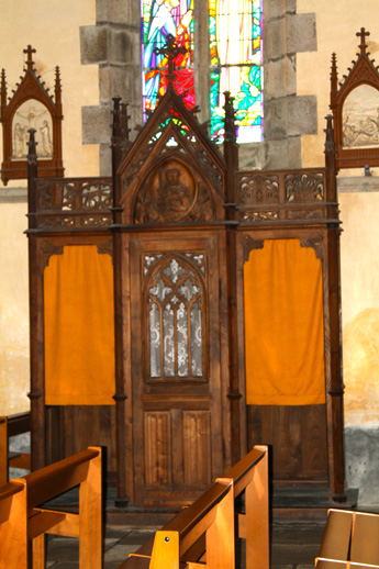 4) Admirez le retable du XVIIème siècle. Le tableau central, signé Pigeon (1674), représente Saint Yves rendant justice au pauvre et se détournant d'un riche au bel habit sous le regard de la colombe.