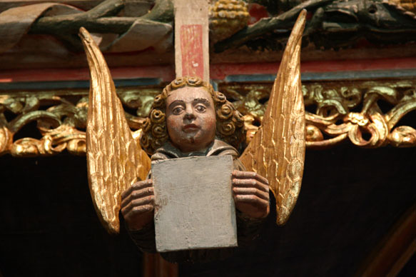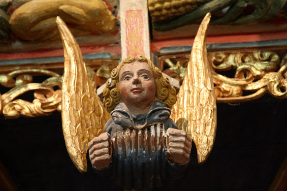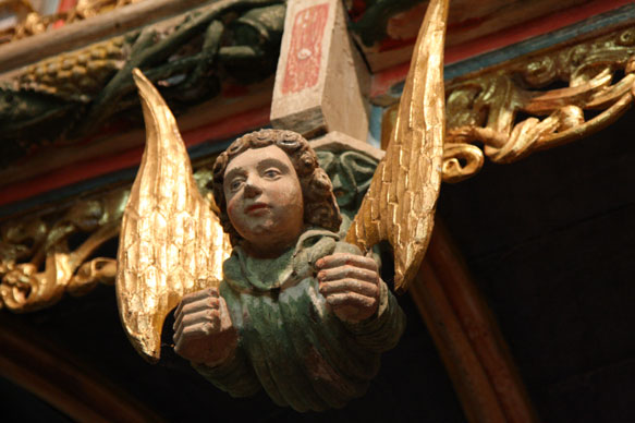 La frise basse de la tribune est décorée d'anges qui portent les attributs de la Passion.