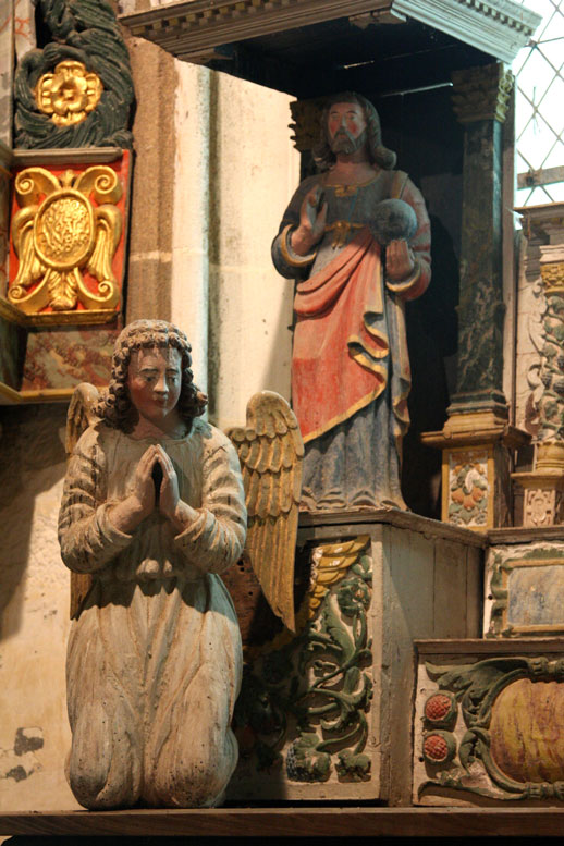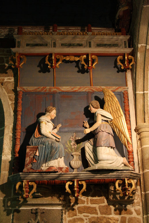 Le mobilier comprend en outre plusieurs statues anciennes dont une Annonciation du XVIème siècle et une superbe représentation de la Vierge, Notre-Dame de Kerfons.