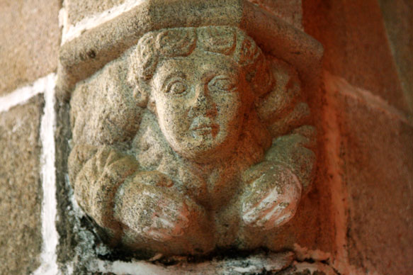 Un petit clocher-mur surmonte le pignon de la façade occidentale. A l'angle sud-ouest, une niche avec dais Renaissance abrite une statue de saint Yves. Le pignon méridional est surmonté d'un pinacle également de style Renaissance : c'est une sorte de clocheton carré terminé sur chaque face par de petits frontons triangulaires sous chacun desquels se trouve une statue.