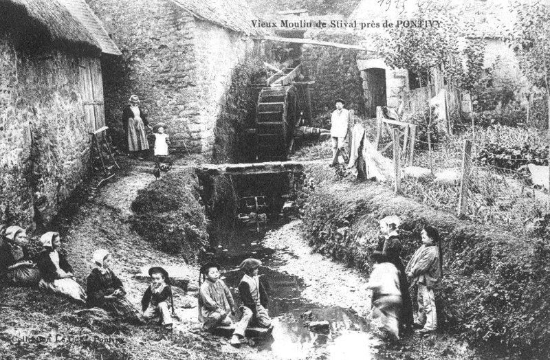 Note 3 : Le territoire de Stival, de forme allongée, est borné au nord par Cléguérec, à l'ouest par Malguénac, au sud par le Sourn, et à l'est par le Blavet. On lui a retiré anciennement le faubourg de Tréleau, pour l'unir à Pontivy, et récemment (1869) le quartier du Rongoet-Kerdisson, pour l'annexer au Sourn. On n'a encore signalé sur ce territoire aucun vestige celtique ou gallo-romain. Au VIème siècle, les Bretons émigrés l'occupèrent et y sont toujours restés depuis. Le nom de Stival ou de Stivel, qu'ils lui donnèrent, semble désigner une fontaine, dont la source sort d'un rocher et qui est ordinairement accompagnée d'un lavoir. C'est là que saint Mériadec, du clergé de Vannes, se retira, vers 650, pour vivre dans la solitude. C'est là qu'il demanda au seigneur du pays de purger la contrée des voleurs qui troublaient le commerce et la sûreté des chemins. C'est là qu'on vint le chercher, vers 659, pour le faire, malgré sa résistance, évêque de Vannes. L'oratoire, sanctifié par sa présence, et renouvelé sans doute après le passage des Normands, devint avec le temps un centre paroissial. On trouve en effet, en 1314, la mention formelle de la « paroisse d'Estival » (Pr. I, 1249). Les catalogues du Chapitre la citent, comme paroisse séparée, en 1387 et en 1422, sous le nom de Stival. En 1516, on la trouve unie à Malguénac, et cette union subsista jusqu'en 1790. Le recteur des deux paroisses ayant fixé sa résidence à Malguénac, Stival fut considéré, mais bien à tort, comme une simple trêve (J-M. Le Mené - 1891).