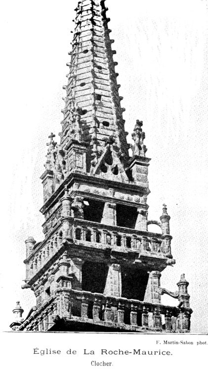 Il faut remarquer encore, près de l'église de La Roche-Maurice, un calvaire dont les trois croix sont placées sur la clôture du cimetière. Les larrons portent des hauts-de-chausses à crevés.