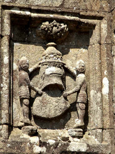 Sur l'ossuaire (XVIème siècle) attenant à l'église, on lit l'inscription suivante : CI FUST FET 1552 MORVAN ROLLAN. Au-dessus de l'inscription se voit un écusson écartelé aux armes des Kernech'riou de Lestrézec.