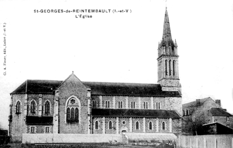 Note 2 : liste non exhaustive des recteurs de la paroisse de Saint-Georges-de-Reintembault : Herbert (vers 1140). Guillaume Le Maczon (en 1485). René Delaunay (en 1564). Guillaume Meslier (il résigna en 1639 en faveur du suivant). Jacques Despas (prêtre de Rennes, pourvu en cour de Rome, prit possession le 25 février 1640). Noël Larcher (en 1671, il fit son testament le 13 mars 1688). André Perdriel (en 1697, prêtre du diocèse, docteur en Sorbonne, il prit part au synode de 1701 ; décédé en 1720). Jean Delourme (prêtre du diocèse, docteur en théologie, pourvu en 1720, il résigna en 1744). François-Eléonor Gastebois (prêtre d'Avranches , pourvu le 30 septembre 1744, il résigna en 1748). Jean-Baptiste Chevy (prêtre du diocèse, il fut pourvu le 3 mai 1748 ; décédé en 1757). François Regnier (prêtre du diocèse, pourvu le 17 juin 1757, se démit en 1774). Joseph-Anne Durocher (prêtre du diocèse, pourvu le 8 mars 1774, il devint recteur de Villamée en 1782). Bertrand Thomas (pourvu le 8 avril 1782, il gouverna jusqu'à la Révolution). Pierre-Jean Biatte (1803-1806). Pierre Daligault (1806, décédé en 1818). François Beaulieu (1818-1821). François Barbot (1821-1842). N... Perdriel (1842-1862). Charles Thomas (1862-1866). Joseph Anger (1866-1870). Pierre Lecerf (1870-1873). Pierre Brassier (à partir de 1873), .....