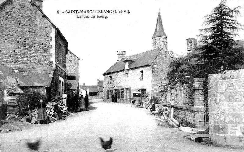 Le territoire de Saint-Marc-le-Blanc est déjà occupé avant l'ère chrétienne, mais le nom de la paroisse n'apparaît qu'aux XIème et XIIème siècles. Saint-Marc-le-Blanc semble être une altération de Saint-Médard-d'Aubigné car la paroisse de Saint-Marc relevait au XIème et au XIIème siècles de la seigneurie d'Aubigné. La paroisse de Saint-Marc-le-Blanc dépendait jadis de l'ancien évêché de Rennes. Pendant la Révolution la commune de Saint-Marc-le-Blanc porte le nom de Mont-le-Blanc.