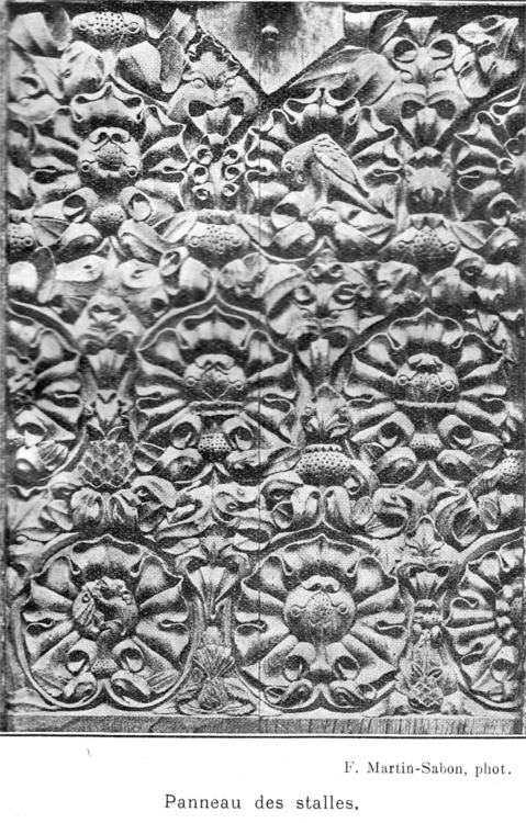 Il faut citer aussi les stalles, où plusieurs accoudoirs et miséricordes sont d'une fantaisie assez remarquable.