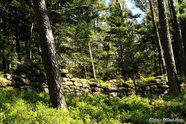 Tout autour de ce triple plateau, le Mur payen se dresse avec hardiesse au ras de la pente, comme suspendu au bord de l'escarpement qui domine les vallées ; il suit rigoureusement les sinuosités des sommets qu'il enveloppe, monte et s'abaisse brusquement avec eux, se replie ou fait saillie selon les accidents du terrain, disparaît même toutes les fois que des rochers à pic rendaient l'escalade impossible. Sa hauteur varie suivant les besoins de la défense ; dans ses plus belles parties notamment entre le Dreistein et le Hagelschloss, il atteint de nos jours encore une hauteur de 2 m. 50 ou 3 mètres sur une largeur de 2 m. à 2 m. 50.